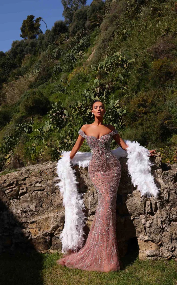 This HF110515 floor-length dress showcases luxurious simplicity at its finest. The deep neckline offers a striking detail, while the smooth, flowing skirt enhances your natural movement. Ideal for refined occasions, evening ceremonies, or formal gatherings, it ensures comfort, elegance, and a stunning silhouette with every wear. Exclusively at Natasha`s